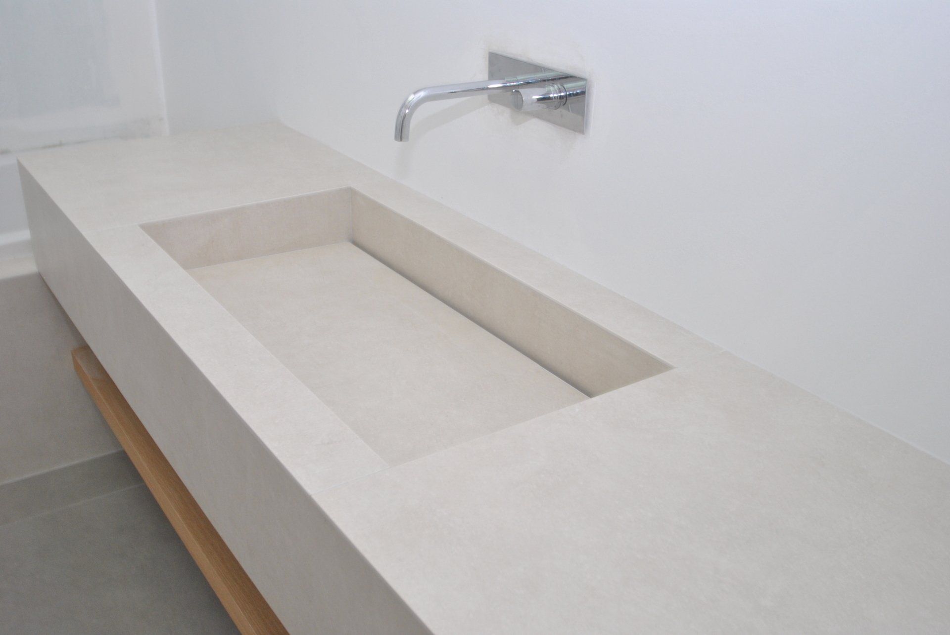 Our tops and basins can be either countertop or suspended with the supply of brackets, with the addition of a bottom with slope to facilitate water drainage, and a chrome-plated central Up&Down drain or a linear channel in stainless steel.